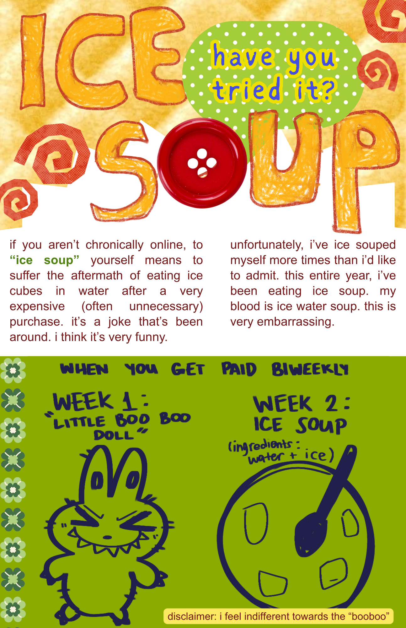 author's note (kind of): hello bearblog! sorry for dying :') life has been busy. not sure there's much to say... things kind of just happen! can't guarantee i'll stick around here. i'd like to revamp my whole blog layout. maybe make it an outlet for posting zines. who knows! anyway, thanks for reading this far ahead. it really means the world to me!!